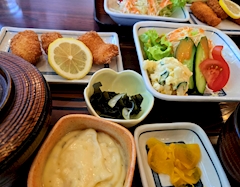 ちょっと前のお昼ごはん(*´艸`*) 二人とも安定の白身魚フライ定食🐟 撮るアングル間違えたから凄い小さく見える👀 ごはん少なめにしてもらうの忘れてて盛り盛りのごはん食べることになって腹パン過ぎて珍しくデザートにたどり着けなかったよ😂