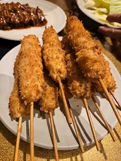 おちょぼさん到着してお店散策🚶💨 野菜が安いのよね👏ここでこれ買って~これ食べて~って見ながら歩いて串かつのお店に到着👆 空いてたから直ぐ座れた🙌もー飲んでるおじさま達がいた🍶私も一杯飲もうかと思ったけど夜出るかもだったから我慢した😂 ここの串かつはソースで食べるのが好き( *´艸`) おでんもみんなで分け分けしてわたしはこんにゃく🍢 私も周りのおじさま達みたいに串かつとおでんでお酒飲みたかったな🤣 今まで行った中で一番空いてたかも🤔それでも私達が出る時には待ちが出てたけどね👏 続く👋