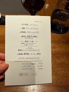 あらためて、昨日のこと。 連れて行ってもらったご飯屋さん おしゃれなところで緊張😮💨 ちなみに予約してたコースとこの紙の内容違って この紙に➕土鍋ご飯もあったよ〜🍚 あれこれアテンドしてもらって ホワイトデーのプレゼントも1時間並んで買ってくれたみたいで なんだか至れり尽くせりってやつ?? 何から何までありがたい🙏🤍