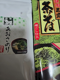 静岡のお土産もろーた🙌 あおさも茶蕎麦も好きだから嬉しい🤤 茶蕎麦はそのまま食べるのも好きだけど瓦そば風で食べるのも好きだから今度やろ( *´艸`)