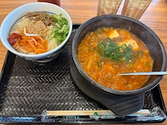 今日のランチ しかけんの海老炒飯にしようかなって 思ったんだけどお休みだった🥺❤️🔥 韓ドン食べにきた😳💗 1人で食べる時なんかいっつも辛く感じるんだよね。 なんでだろうな🤣🤣 辛いけどなんとか食べ切れた😋💞