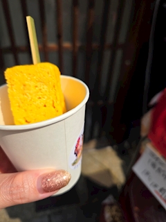 この卵焼き食べたかったやつで👆 4組目くらいに並んでたらお店の人が外に出てきて何本?って順番に聞いてて👂 みんな1本ずつ頼んでたんだけど私たちの2組後ろで今日の分は売り切れです~ ってΣ( ゚Д゚)買えて良かった🤣 これめっちゃ美味しかったんだー(*´艸`*)ほんのり甘くてプルプルで👏これをつまみながら2本目飲んで🍻 みたらし団子🍡行きに女の子達が食べてて美味しそうだったからそこのお店で買った(*´ー`*) 2店舗くらいあったんだけどめっちゃ並んでたから出たとこの屋台で買った😂 久しぶり犬山城下町も楽しかったな~桜も見れたし🌸 また行きたいd(*´∀`*)b おしまい👋