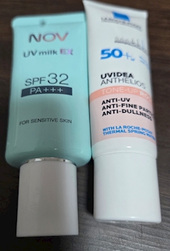 春頃から外出る時の必須アイテム👆 いつもはラロッシュポゼだけなんだけど春先から日焼け止めもプラスしてる💨 肌が弱いから日焼け止めも塗ったら合わなくて荒れちゃったりするからNOVのやつ使ってる👏 高校生の時に春先に顔と首が真っ赤になって痛くて病院行ったら紫外線がダメですって言われて🫨 外出る時は日焼け止め塗って帽子とかで紫外線対策してくださいって🙅 そこから外出る時はめんどくさいけど塗る様にしてる🙆